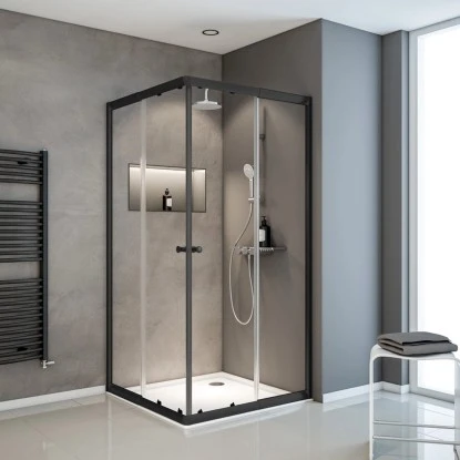 Schulte Eckeinstieg Mit Schiebetüren Sunny 180 Cm X 75-90 Cm Schwarz Klarglas